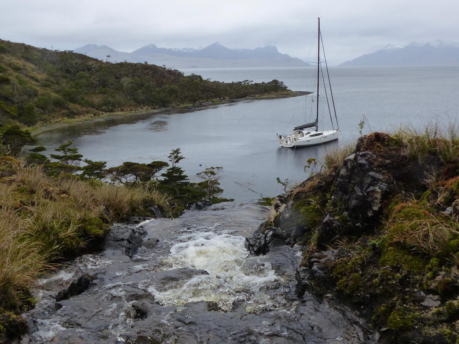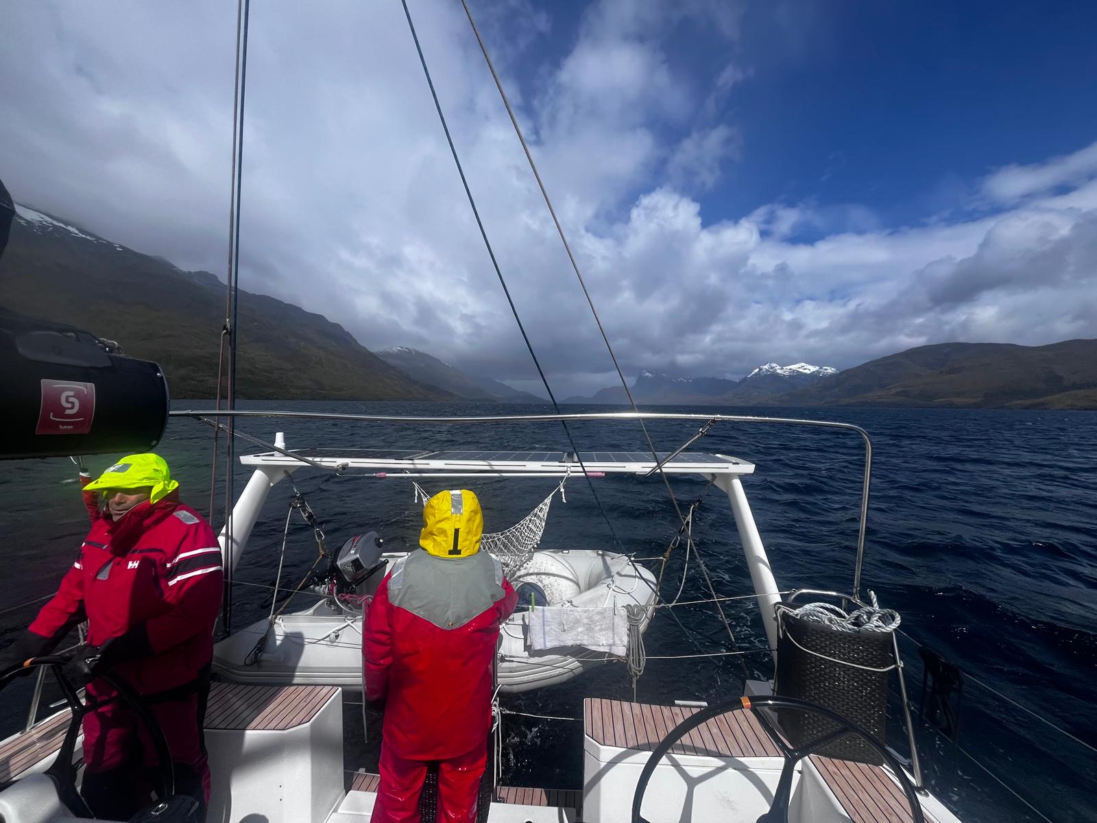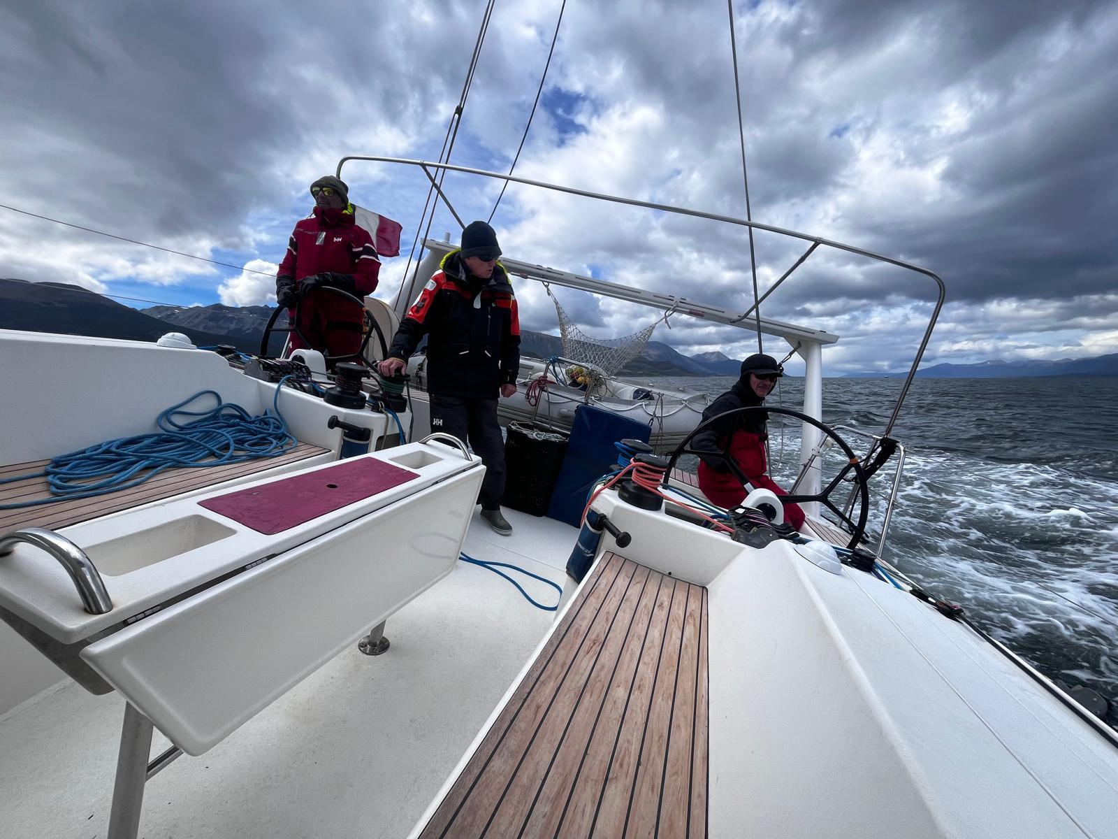Nous sommes ensuite remontés à nouveau vers Puerto Williams en vue de la sortie du Chili, en y passant une soirée d’adieu au Micalvi avec tous nos voiliers amis. La remontée du canal de Beagle vers Ushuaïa s’est effectuée au près avec 25 à 30 nœuds sur mer plate et sous le soleil, sous 1 ris et trinquette… un régal !