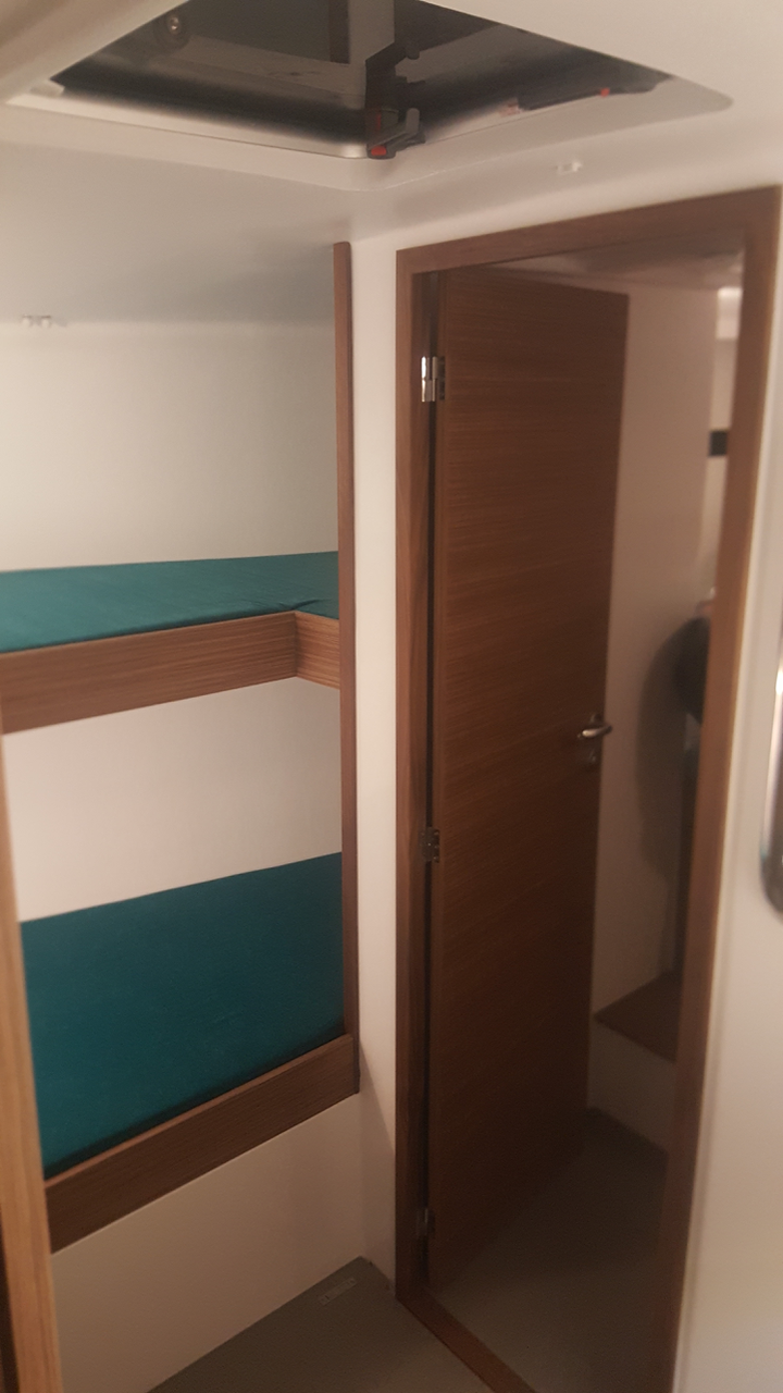Dans une version de boiserie en Alpi noyer et avec sa couleur de coque « vert lagon' » le bateau est superbe.